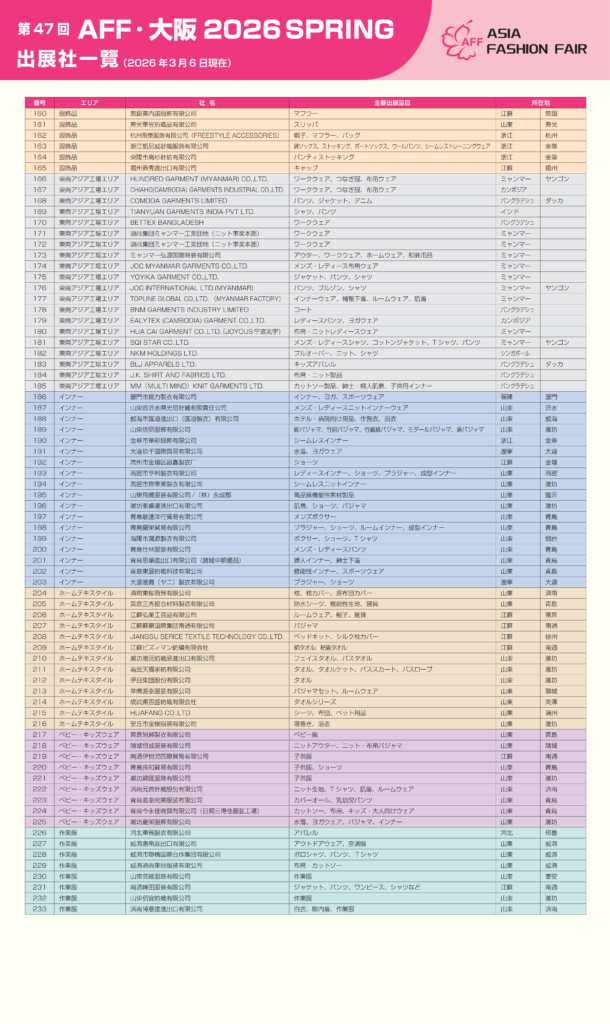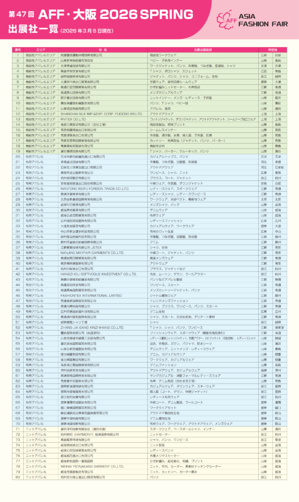 第47回 AFF · 布帛出展企業紹介